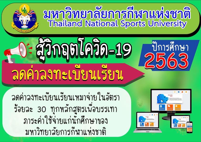 มหาวิทยาลัยการกีฬาแห่งชาติได้ลดค่าลงทะเบียนเรียนปีการศึกษา 2563 ในอัตราร้อยละ 30 ทุกหลักสูตร